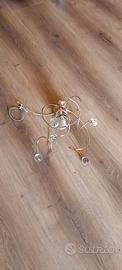 Lampadari in oro con palline di vetro/cristallo.2 Lampade Grandi 5 punti luce 1 lampada piccola un punto luce. Si vendono tutte insieme non separabili.