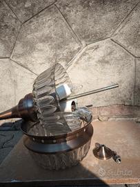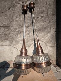 Coppia di lampadari in vetro e alluminio colore bronzo