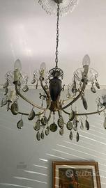 Lampadario vintage con struttura in metallo brunito e pendenti in cristallo, 5 punti luce con vetri satinati. Stile classico/elegante, perfetto per salotto o sala da pranzo. Prezzo 70€ cad.