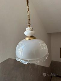 •Lampadario in vetro bianco satinato con decorazioni floreali e dettagli dorati, perfetto per ingressi, corridoi o ambienti raffinati.[amazonaws]