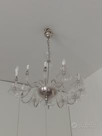 lampadario 12 braccia in vetro trasparente come nuovo, perfettamente funzionante. completo di tutti i pezzi, 12 braccia, 12 coppette piccole, 12 coppette grandi, 12 copri attacco in argento. ritiro già smontato in via Salvator Rosa zona museo Napoli. comprato in un negozio di Roma, vendo per cambio arredamento, ideale x salone.