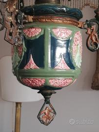 Lampadario a sospensione inizio 1900 in ceramica e opaline. In ottime condizioni e funzionante.