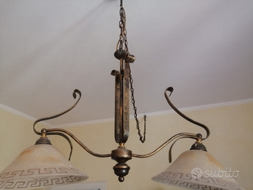Lampadario in bronzo con campane in vetro fumé decorate. Per chi volesse prenderlo di persona mi trovo a Roma.
