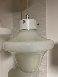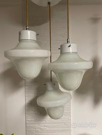 Bellissimo lampadario di pregio con 3 bocce in vetro molto pesante, stile Nason, anni 60. In ottime condizioni, senza alcuna parte rovinata e vetri perfettamente integri. Ciascuna è alta 20cm con un diametro di 22cm. Complete di cavi e struttura da soffitto originale. Solo ritiro a mano in zona Leinì o Avigliana. Astenersi perditempo