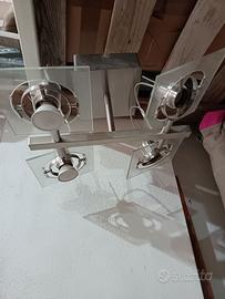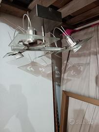 PREZZO NON TRATTABILE lampadario alto 22cm, largo 37x35cm colore grigio con 4 attacchi per lampadine,e ogni lampada si può regolare la posizione desiderata vendo euro 25 tel 3493421760