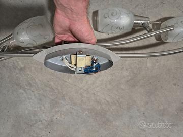 Vendo lampadario da soffitto a 2 bracci in acciaio inox e 4 faretti orientabili con copertura in vetro satinato. Comprensivo di lampadine e in perfetto stato. Comprato da Leroy Merlin. Ritiro a mano