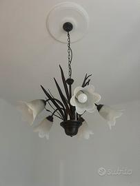 Vendo lampadario 5 fiori in ferro battuto e vetro. Ottime condizioni. Ritiro a carico dell’acquirente.