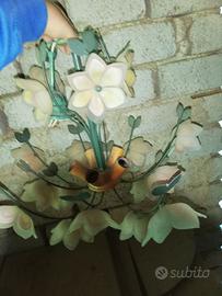 LAMPADARIO 5 LUCI IN VETRO CON ROSE