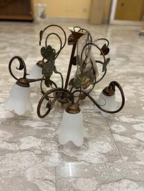 Vendo lampadario 5 luci , fiori metallo scuro , nuovo con cartellino ( rimanenza magazzino)