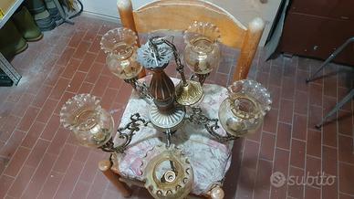 Lampadario con 5 punti luce coperti con bocce di vetro intatte. Sono comprese anche 5 lampadine LED a luce calda da 5 W ciascuna (totale 25 W). Vendo per inutilizzo.