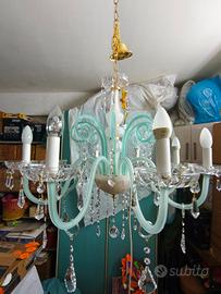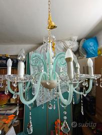 vendo lampadario NUOVO 8 luci colore cristallo e verde acqua, montato solo per fare le foto, il lampadario è NUOVO vendo euro 250,00 poco trattabile