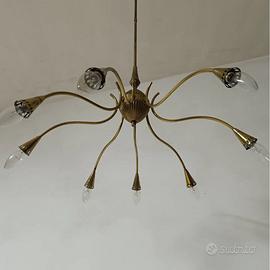 Lampadario 8 luci vintage in ottone anni 50