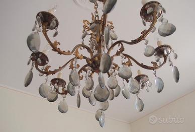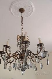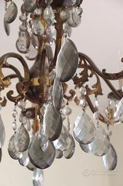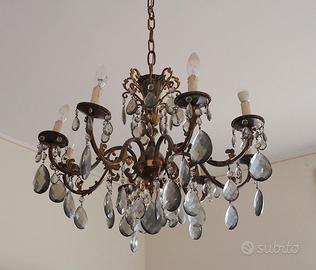 Lampadario con 8 punti luce Vintage con braccia porta lampadine in ferro ed impreziosito da gemme in cristallo. I punti luce sono differenziati in due sezioni in modo da poterne accendere 4 o 8 a piacere, e dell’illuminazione necessaria.