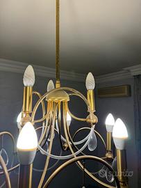 Vendo lampadario vintage con cristalli e 9 luci. Mancano 3 cristalli. Solo ritiro. Zona piazza di villa carpegna Roma