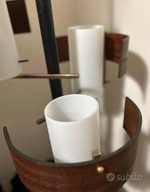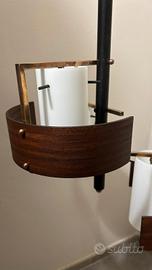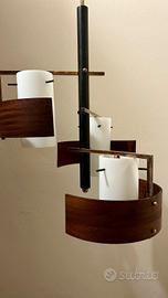 Lampadario a sospensione a 3 luci di Stilnovo di ottone, vetro e legno. Dimensioni: Altezza: 90 cm (35,44 in) Larghezza: 35 cm (13,78 in) Profondità: 35 cm (13,78 in) Il lampadario ha qualche segno del tempo ma si presenta bene.