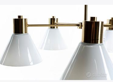 Bellissimo ed elegante lampadario Ikea Flugbo a 5 bracci(ormai fuori produzione) in ottone con paralumi in vetro satinato. Nuovissimo. Comprese 5 lampadine led. Zona Montesacro Talenti