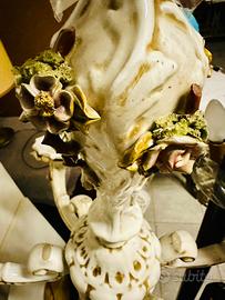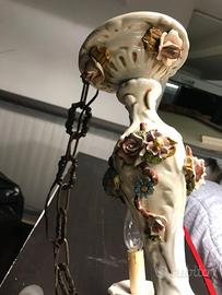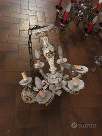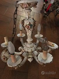 Lampadario a cinque bracci in ceramica di Bassano, vendo con kit di candelette nuove