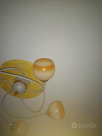 lampadario a sfere di vetro arancio con una sfera di ricambio