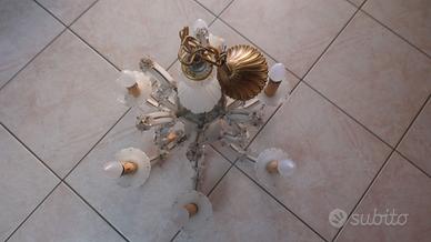 LAMPADARIO A SEI LUCI QUALCHE PEZZETTINO MANCANTE BIANCO CAMERA DA LETTO