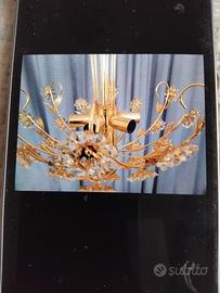 lampadario a 6 luci con rosette in metallo con cristallo con montatura dorata d.50cm h.52cm