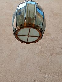 lampadario a barile design anni 60 70 40 x 35 altezza totale 85 vetro e ottone ben conservato e completo solo ritiro a mano