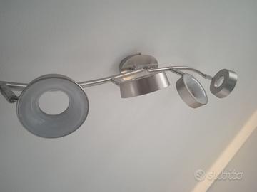 Lampadario a due barre con quattro punti luce a LED integrati ed orientabili. Lunghezza circa 72 cm. Già smontato.