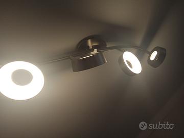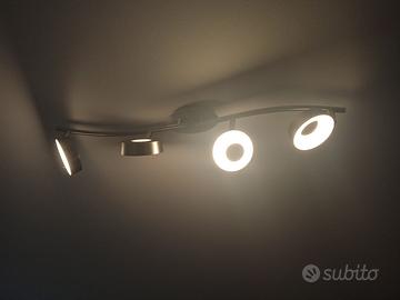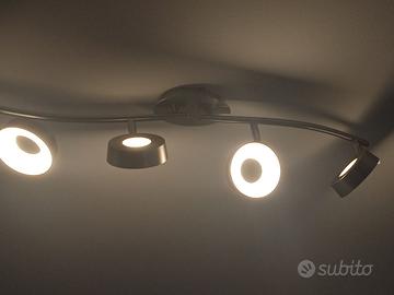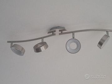 Lampadario a due barre con quattro punti luce a LED integrati ed orientabili. Lunghezza circa 72 cm. Già smontato.