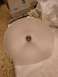 Lampadario a campana dal design moderno in vetro satinato. - Struttura in metallo. - Diffusore in vetro satinato.