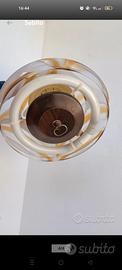 Lampadario vintage a campana in vetro bianco e giallo. Funzionante con neon incluso. sostituito per cambio arredamento.
