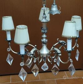 Lampadario a candelabro vintage, con 5 lampadine con forma a candela. Completo di 2 abatjour coordinate.