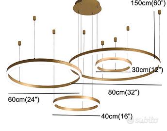 Lampadario a cerchi, mai utilizzato, ancora confezionato, causa cambio di progetto. Tutte le caratteristiche disponibili tra le immagini.
