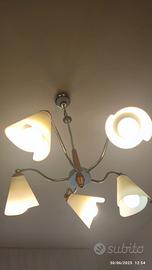 Lampadario classico/moderno in legno e vetro. Bello ed elegante.