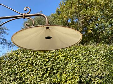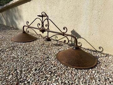 Vendo lampadario a 2 campane. Molto bello, realizzato artigianalmente, con decori in ferro battuto e campana interna in ceramica. Misure: lunghezza totale 125 cm altezza 77 cm altezza senza catena 37 cm diametro campana 36 cm (esterno, antico, antiquariato, piatti, bracci, bilanciere, vintage)
