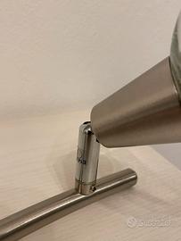 Struttura in metallo cromato e diffusori in vetro sferici.