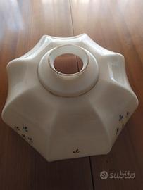 Paralume in vetro opalino "soffiato" primi anni 50. Originale. Colore beige con decori di fiorellini anch'essi in vetro e leggermente in rilievo. Diametro cm. 27. Altezza cm. 12,5. Attacco per portalampada cm. 6. Nessuna sbeccatura nessuna crepa. Disponibile per inviare ulteriori foto più dettagliate e informazioni, nessun disturbo. Per eventuale spedizione garantisco un imballaggio adeguato.