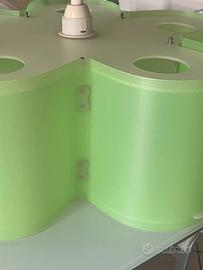 Lampadario a forma di fiore, laterale verde menta e basi bianche, in plexiglass, adatto a camerette o tutti gli ambienti