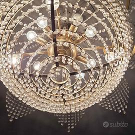 Vendo lampadario riproduzione anni 50, con 16 lampadine, azionabili in 3 differenti gruppi. Le gocce sono in vetro. Diametro circa 75 cm