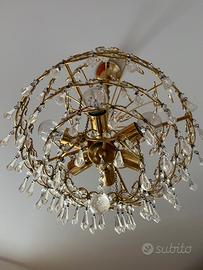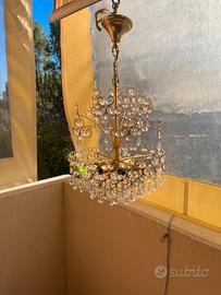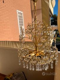Lampadario classico bagnato in oro con gocce di cristallo piombato.