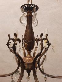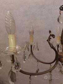 Lampadario a gocce con 2 applique, anni 70. In buono stato, ci sono tutti i pezzi, alcune candele sono ingiallite sono da ripulire, diametro cm. 54 Preferibile il ritiro a mano per la fragilità o spese di trasporto a carico dell'acquirente.