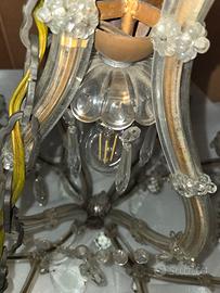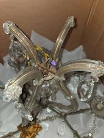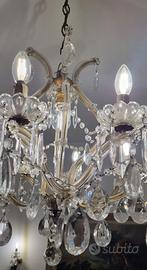 Lampadario a gocce in stile Maria Teresa, di produzione della metà del XX secolo (anni '50). Pendagli: gocce, mandorle e sfere in cristallo che creano i classici giochi di luce e rifrazioni. Bracci: 6 luci disposte su un unico livello Solo ritiro a mano a Milano zona Vigentino