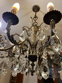 Lampadario vintage a 10 luci, in ottone con gocce sfaccettate di cristallo, in ottime condizioni (vedere foto)Sulle reali condizioni dell’oggetto valutare le fotografie in quanto hanno valore prioritario.