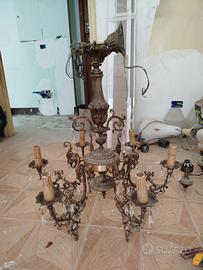 lampadario a gocce di cristallo con 6 punti luce in ottone. ritiro Torino città