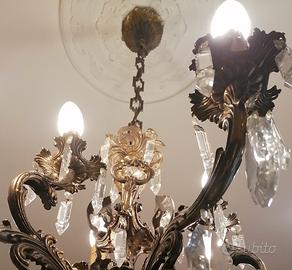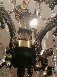 Lampadario vintage a sospensione a 7 bracci con gocce di cristallo. Perfettamente funzionante e integro.