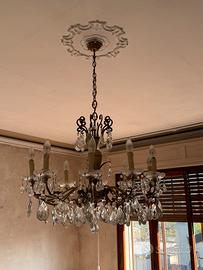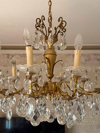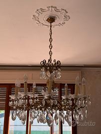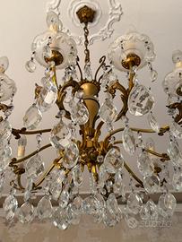 Lampadario a goccia in bronzo e cristalli originale anni ‘50. Dieci bracci. Tenuto benissimo.