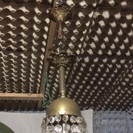 Lampadario a goccia anni 50, è a fuorigrotta. Le dimensioni del cerchio al diametro sono di 30 cm l'altezza è 60 cm.