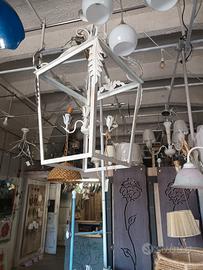 lampadario a lanterna, 4 luci ,fatto artigianale, colore bianco invecchiato, tenuto in esposizione