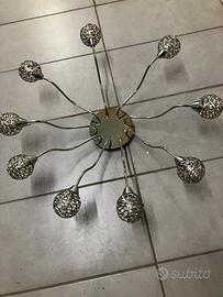 Lampadario in acciaio con nove luci, cm 90 dí diametro, funziona con luci a led G9 equivalenti ad alogene da 30 a 50w.