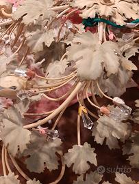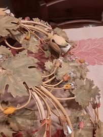 vendo lampadario a plafoniera in ferro battuto e cristalli di boemia, lavorazione tutta a mano di alto artigianato dipinta in colori sfumati crema e verde . Si compone di sei luci . dimensioni d'ingombro: cm 70 x 25. peso circa 12 kg. Ottimo stato di conservazione. le dimensioni superano le massime di subito, occorre concordare con loro. Ns.disponibilita' ad imballare e consegnare ad un corriere di Vs. scelta che abbia filiale a lucca .