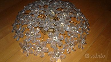 Lampadario a plafoniera a forma di rosa con petali in gocce di cristallo, comprensivo di attacchi per due luci
