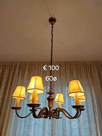 lampadario a sei bracci in ottone bronzato 60 diametro, ogni lampadina e dotata di paralume in pelle come da foto, altre info/foto in privato